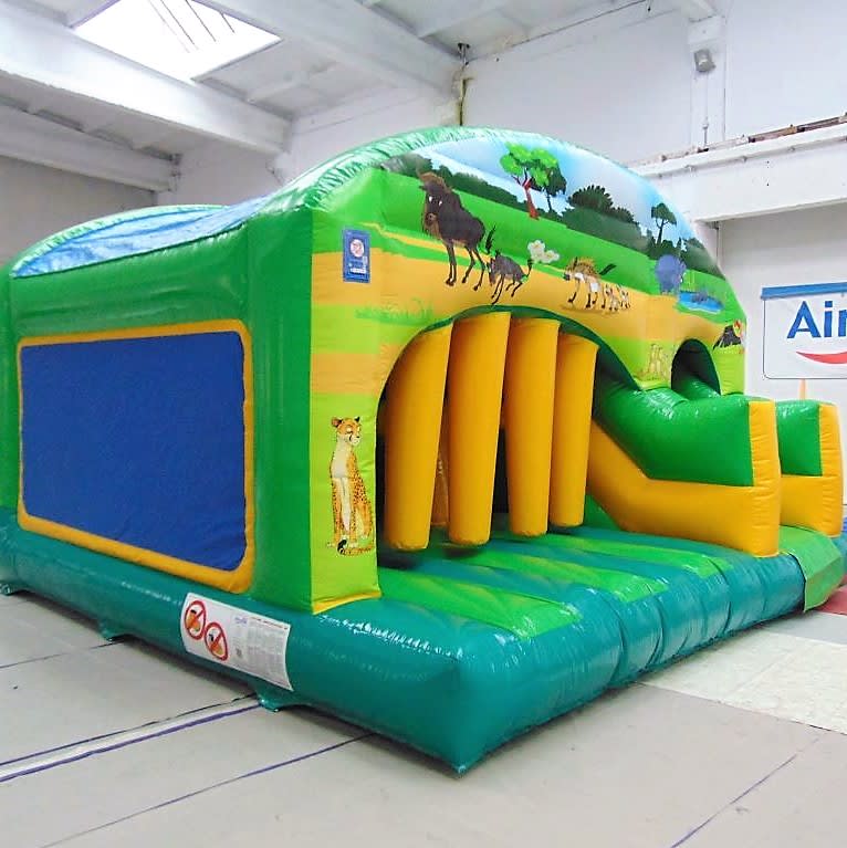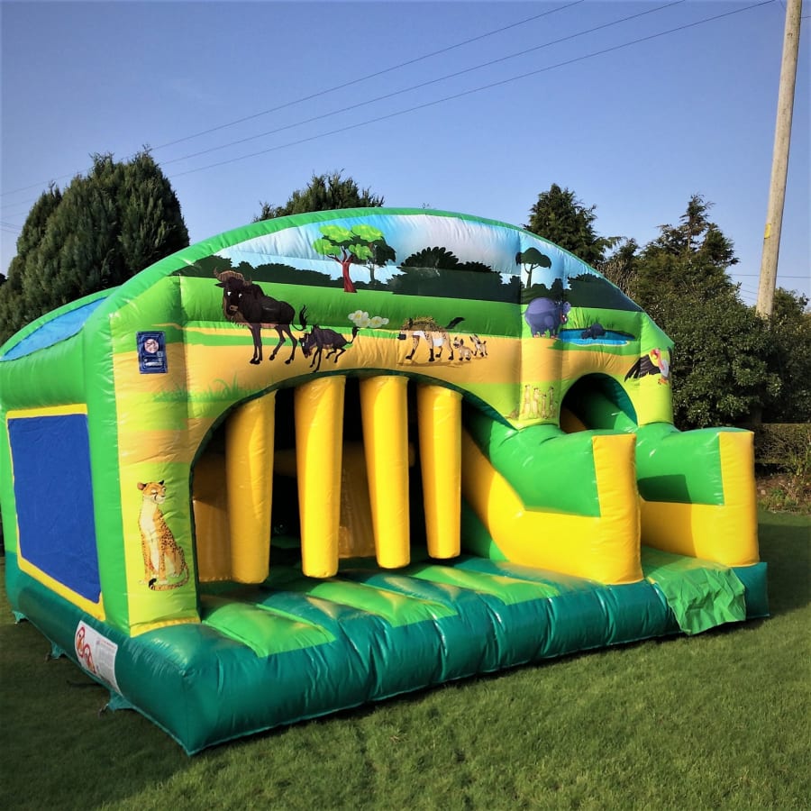 Our 20ft x 20ft Safari Obstacle Course contains a bounce area and pop ups to enjoy as well as a 6 ft slide!