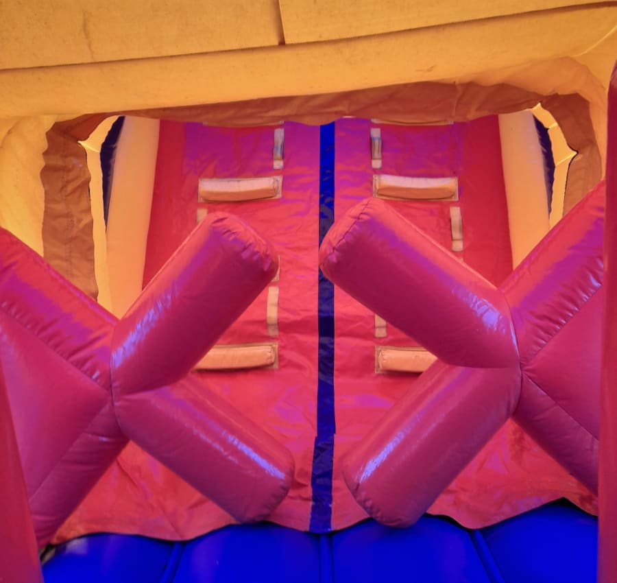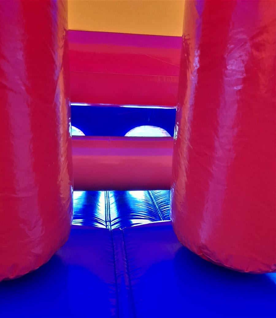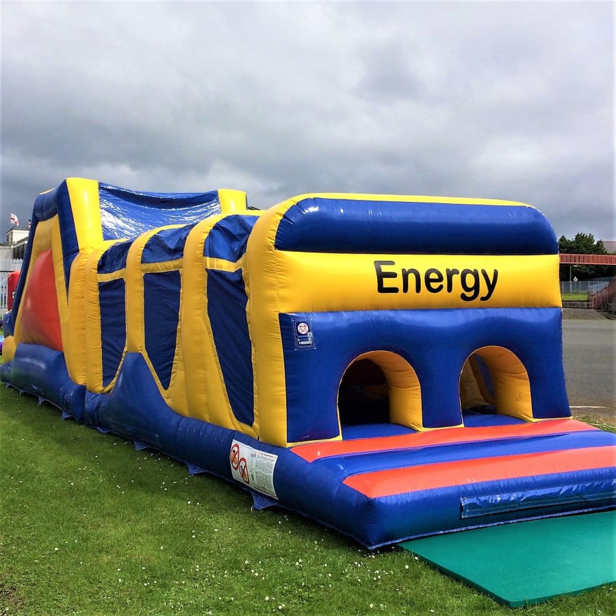 Our impressive and largest Assault Course, the 14ft x 42ft Energy Assault is suitable for all ages and has climb througs, a bounce area, pop ups leading to a 10ft slide.