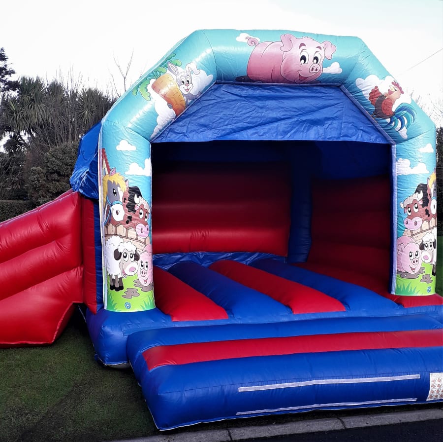 Our 15ftx17ft Farm themed banner castle has a large bounce area with the added bonus of a slide which helps keep the kids on the move.