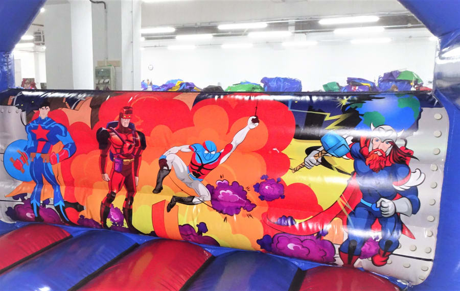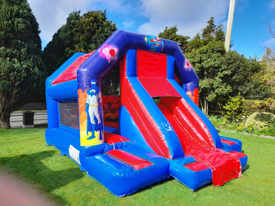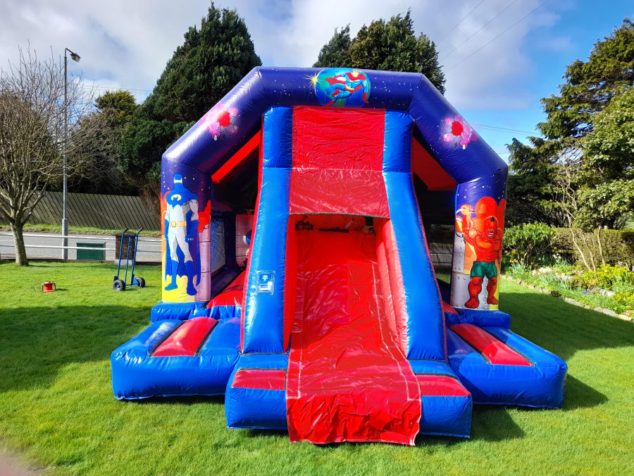 The 18ft x14ft Superhero's Combi Castle is suitable for both younger and older kids.