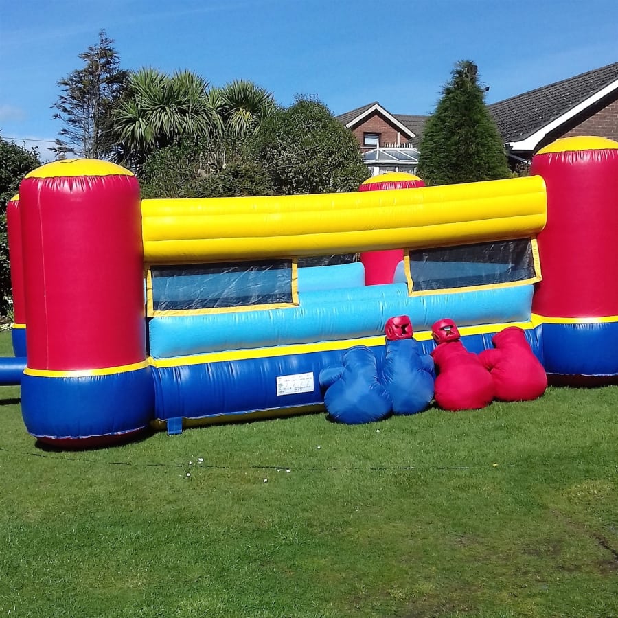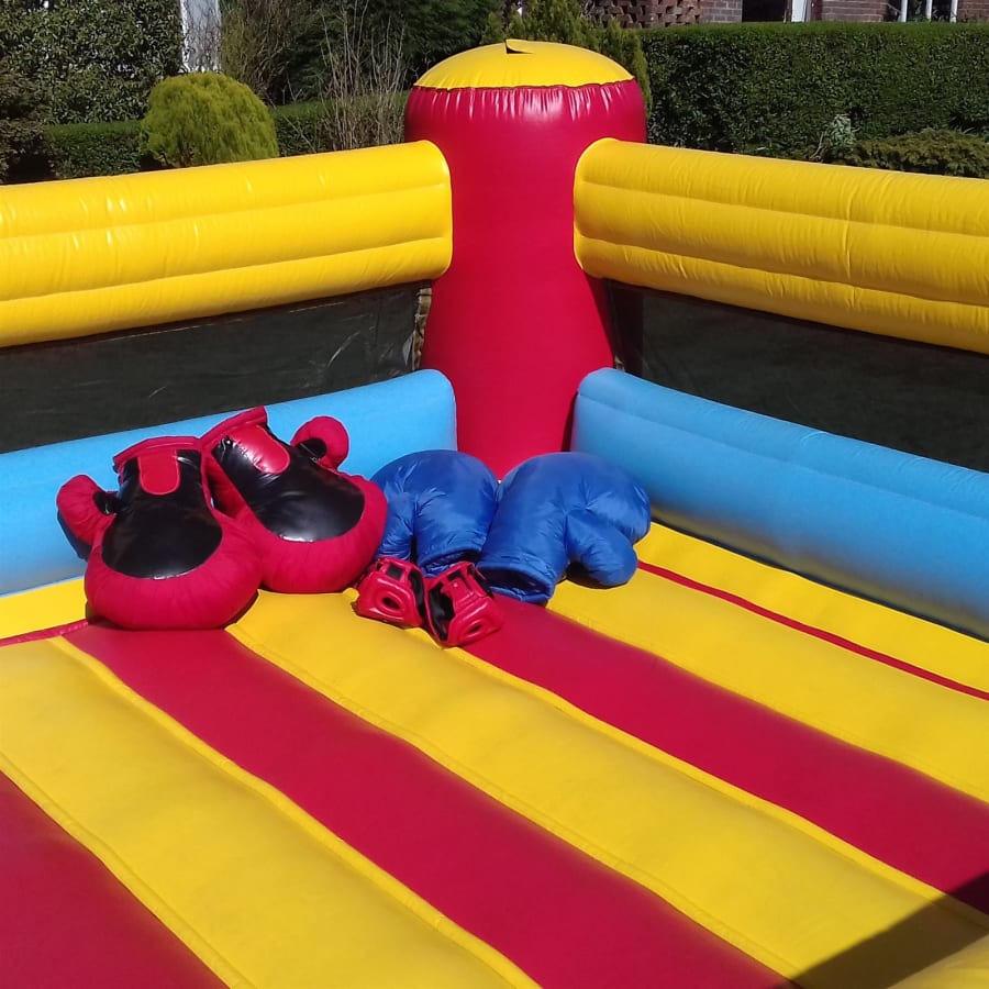 Our 18ft x 18ft Bouncy Boxing ring comes complete with boxing hats and oversized gloves!