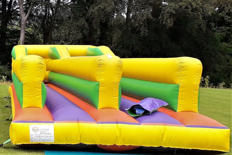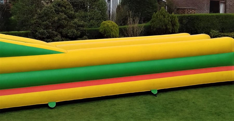 Our 11ft x 35ft - 2 lane Bungee Run inflatable game includes adjustable sized jackets which then attach to the bungee cords .