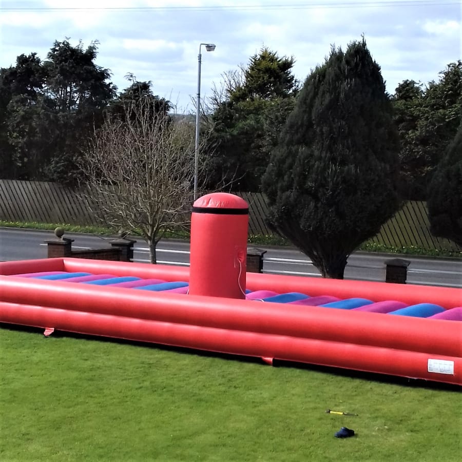 Our 14ft x 34ft Bungee Eliminator inflatable game allows users to pull against each other on the same bungee cord to try and attach their velcro pad to the end before their opponent!