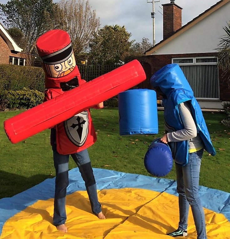 Wear the tabard and try to knock of your opponents velcroed on head before they knock off yours!