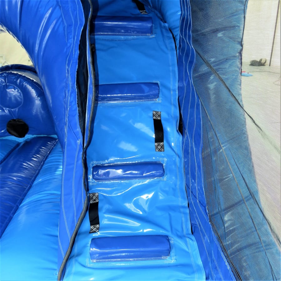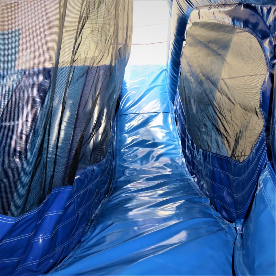 New for 2107 our 16ft x 14ft Ice Cube Cube castle has an 8ft slide curving around the back accessed by internal steps.